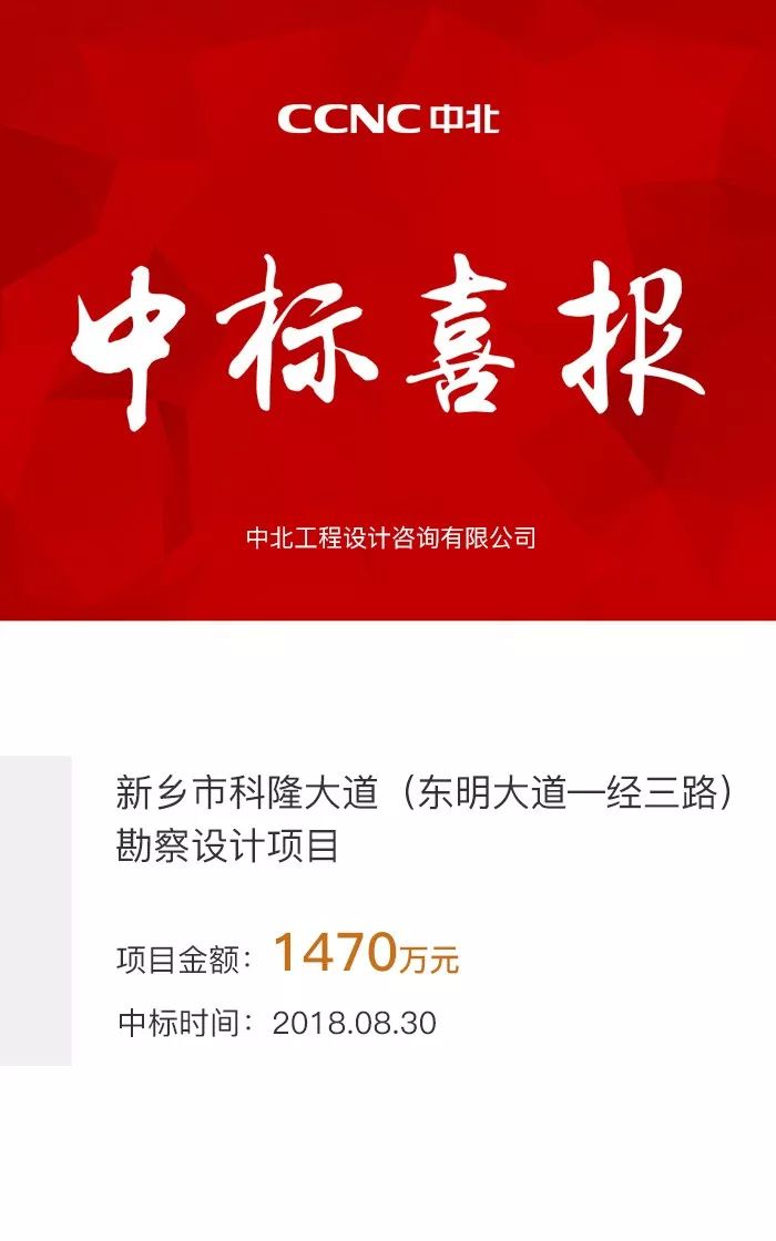中北工程設(shè)計(jì)咨詢(xún)有限公司(簡(jiǎn)稱(chēng)中北設(shè)計(jì)院)憑借豐富的施工經(jīng)驗(yàn)、強(qiáng)大的技術(shù)力量團(tuán)隊(duì)、行業(yè)競(jìng)爭(zhēng)力以及良好的信譽(yù)度于2018年8月30日順利中標(biāo)“河南省新鄉(xiāng)市科隆大道(東明大道—經(jīng)三路)勘察設(shè)計(jì)項(xiàng)目”。